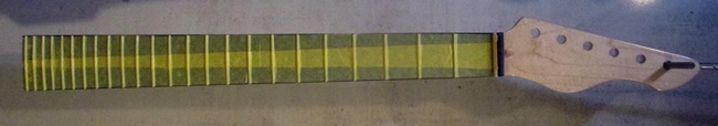 フレットを打ちました。12/16 24フレットに合わせて全体を5パイにしました。