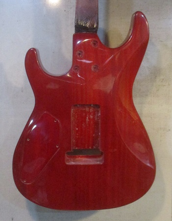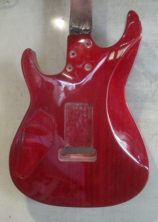 ジャック穴の加工をしました。8/3 アップリセス加工をしました。トレモロ部分もスプリングが当たらない様に斜めにカットしています。