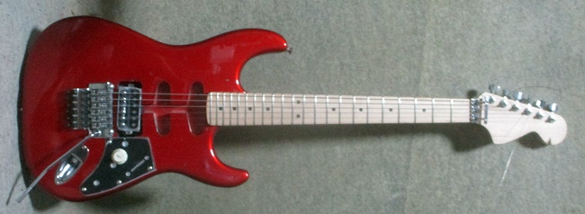 お預かりしたギターです。 画像では判り難いですが、カタログの色ではなくて綺麗なキャンディアップルのSTSです。かなり状態が良いですが、スケール変更してフロイドローズ仕様にします。