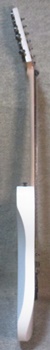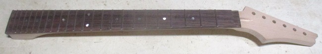 指板の加工をしてポジションを入れました。1/17 先にネックエンドの加工をしました。最終フレットが指板エンドなのでヒサシ部分はフレットを打ってから加工します。